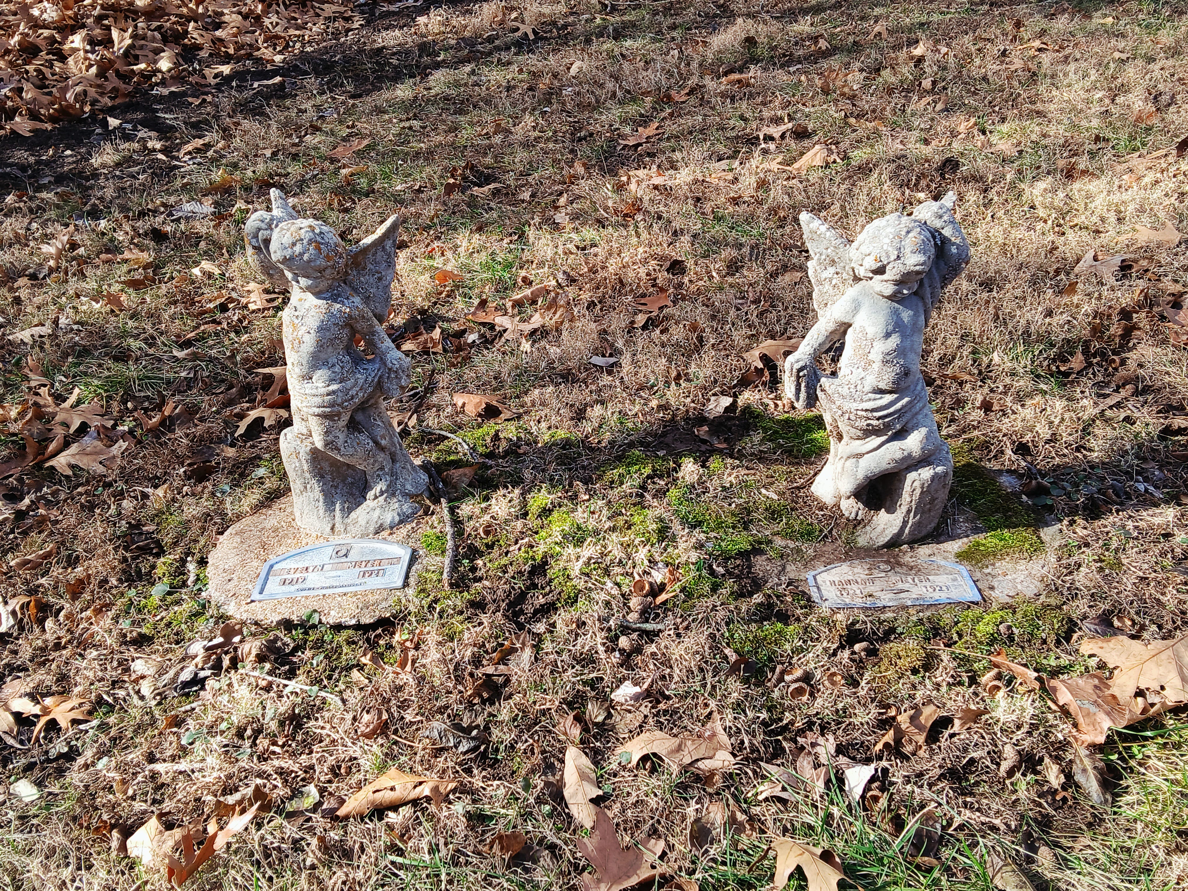Near the grave of America is a crescent of stone. “In Memory,” a sign says. “The stones making the patio in front of this bench, are made from the Tombstones of the many people buried here. LOST FOREVER IN TIME.” The patio was built by Columbia Boy Scout Troop 320. They did a good job.